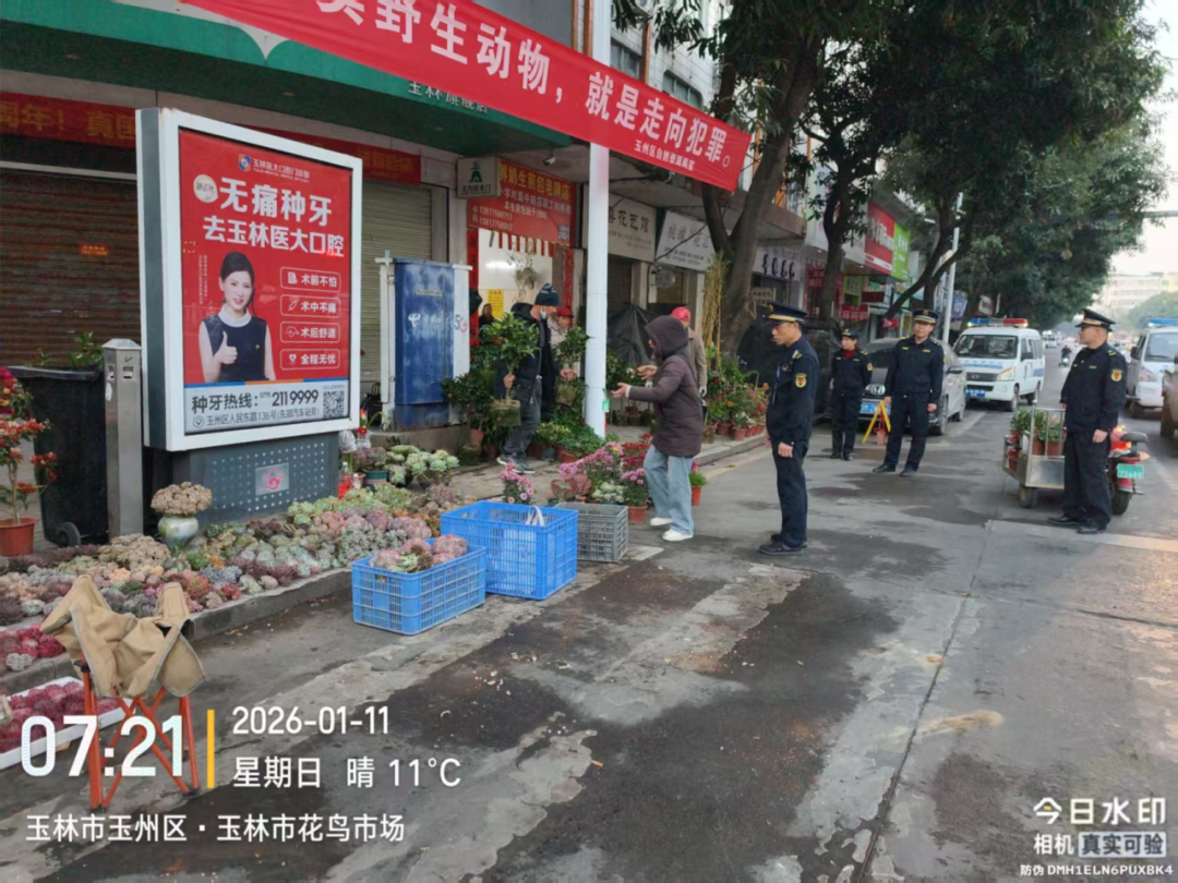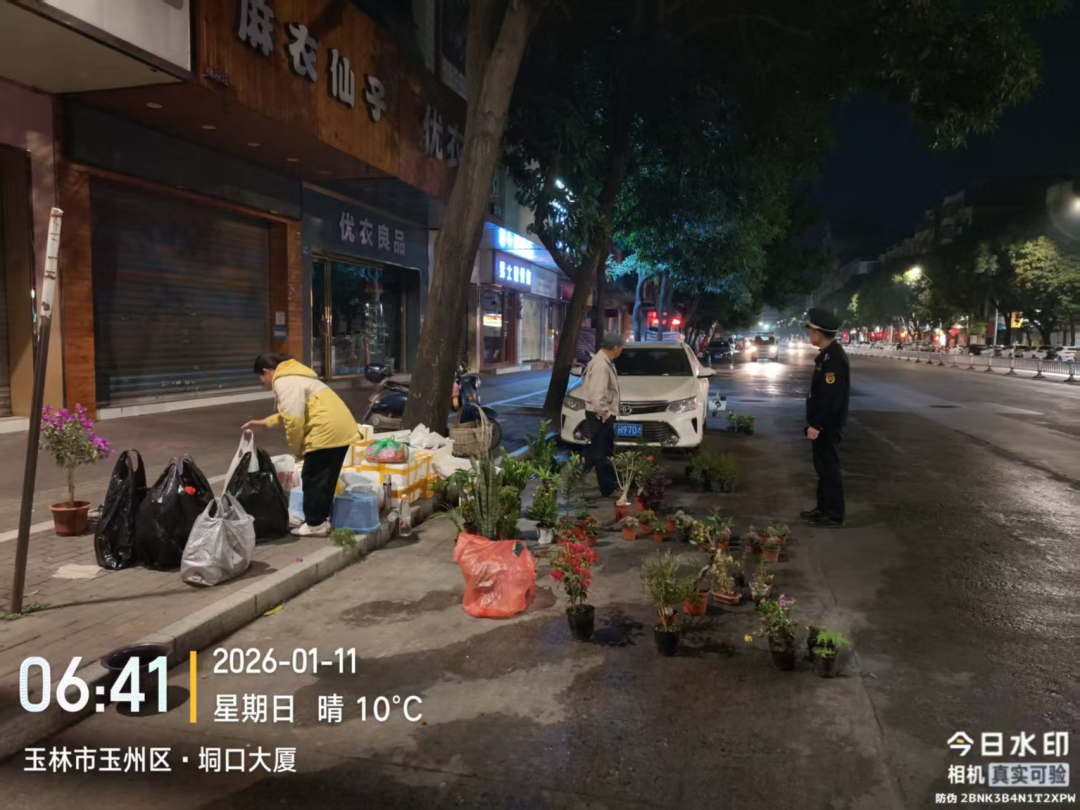 2026年1月11日,天未破晓,玉林市玉州区城市管理综合行政执法大队便联合南观、垌口、新民社区工作人员提前到位,用“721工作法”将服务融入治理全程——耐心向摊点业主讲解规范要求,温柔引导有序摆摊,用真诚沟通化解顾虑,没有生硬说教,只有暖心服务和柔性执法。