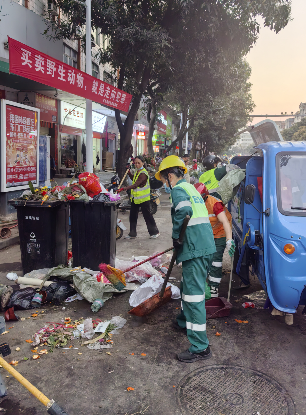 面对春节期间垃圾产生量激增的情况,玉林市环卫服务中心提前统筹、周密安排,督促宜美、洁亚两家服务公司优化作业流程、加密清运频次,统筹调配700多台各类环卫机械设备,组织1500余名环卫工人实行分片包干、责任到人措施,全力保障节日保洁清运工作高效推进。垃圾清运车辆穿梭在城市的大街小巷,及时将收集到的垃圾运往处理场,确保城市垃圾及时清理、日产日清。